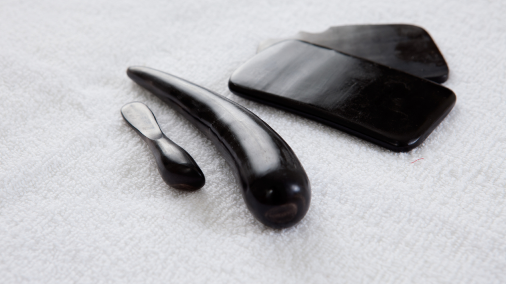 - Tworzywo sztuczne – tania alternatywa dla naturalnego kamienia gua sha. Tworzywa sztuczne nie oferują tych samych korzyści co kamienie naturalne.