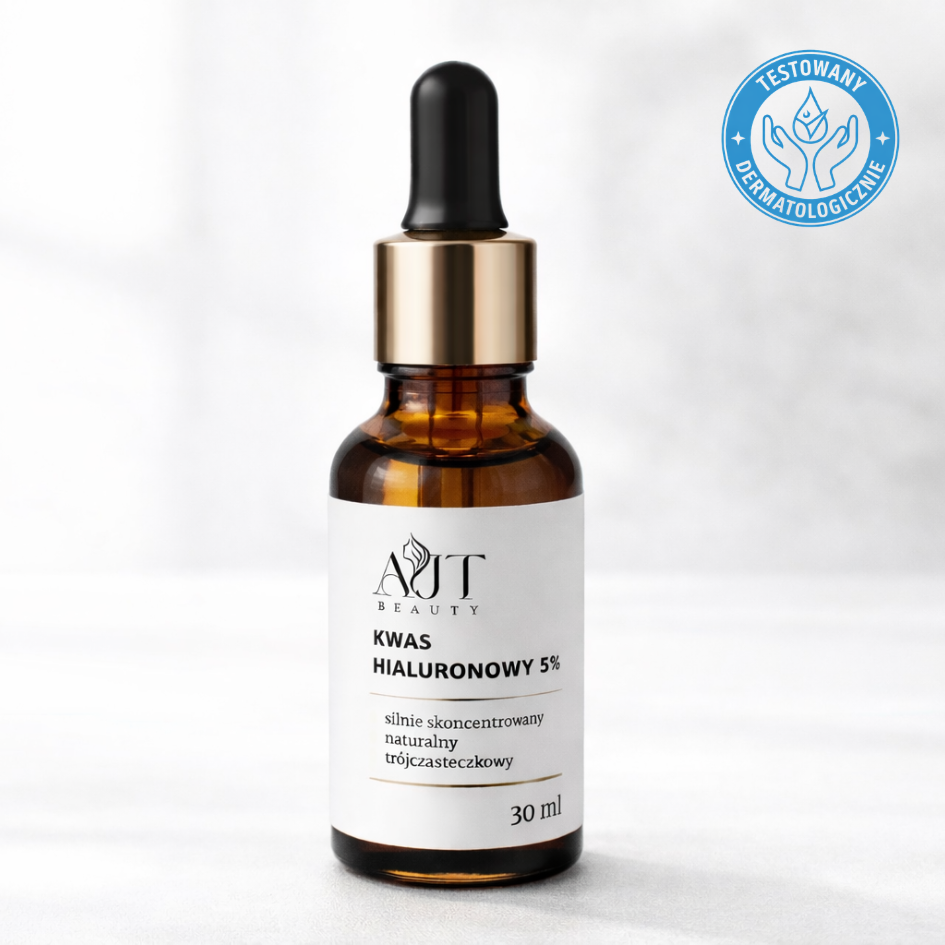 Kwas hialuronowy 5% AJT Beauty to nowoczesne serum nawilżające, które działa wielopoziomowo, odpowiadając na realne potrzeby skóry — od natychmiastowego ukojenia po długofalową poprawę jej kondycji.